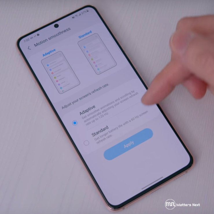 On S21 you get a 120HZ 1080 panel. When you put the Mi11 and S21 side by side, you will find the Mi 11 better than the S21. But, Samsung uses LTPO panel that automatically down-clock the screen refresh rate to 48HZ in S21 when the screen is static to save battery. When it comes to power efficiency, Samsung is better than Xiaomi.