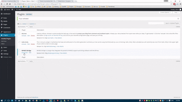 Login to your WordPress dashboard, install the WHMCS bridge plugin and activate it in your WordPress. Next move to the WHMCS bridge plugin settings. Here you need to add your WHMCS account URL and click save settings.